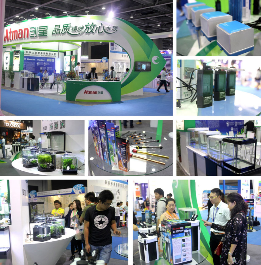 我們把本次參展看作是2015年產(chǎn)品研發(fā)的閱兵場,展會上秀出了以“微水族”為概念的新一代配套式魚缸,新研發(fā)的節(jié)能水泵,氣泵(氣立方),新型加熱棒(猛將,金剛),新升級的AT缸外生化過濾桶系列等等。